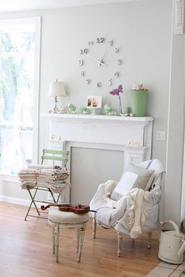 При желании воссоздать с помощью фальш-камина в интерьере квартиры европейский декор, стоит имитировать винтажный очаг, характерный для французских домов позапрошлого столетия, и оформить стены вокруг него группами картин, кисти художников той же эпохи.