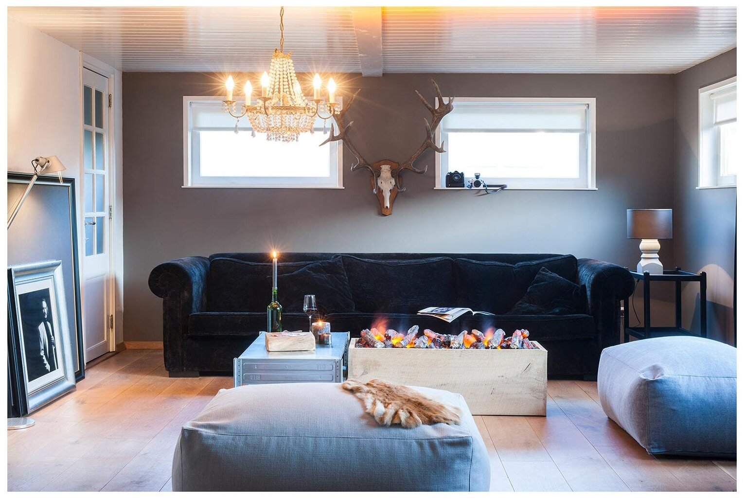 Самый авангардный камин в современном стиле из всех. Устанавливаются прямо посреди комнаты, что создает интересный эффект зонирования. Хорошо подходят для больших гостиных, а вот хрущевским или брежневским залам они противопоказаны.