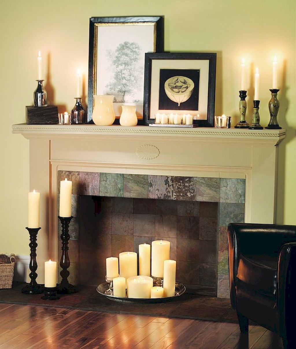 Идей по декорированию камина достаточно много. Дизайнеры предлагают все новые и новые варианты, поэтому можно выбирать практически любой доступный способ – от зеркальных полок до всевозможных гирлянд и подсвечников.