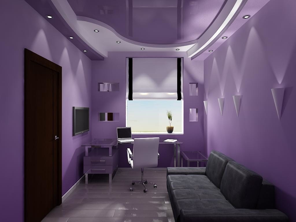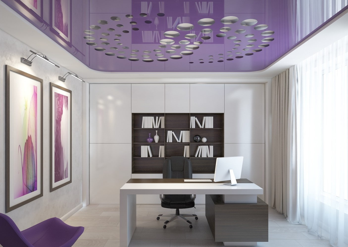 Сиреневый потолок: виды (натяжной, гипсокартонный и др.), сочетания, дизайн, освещение