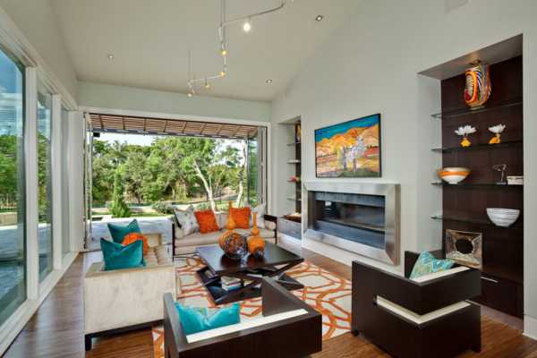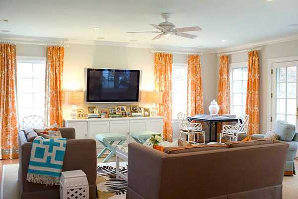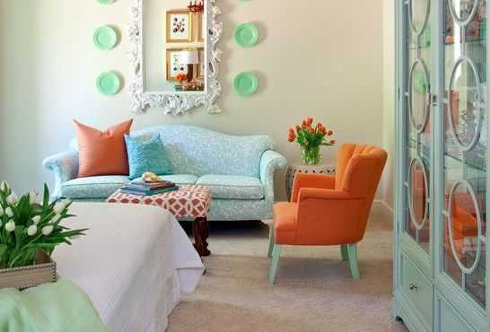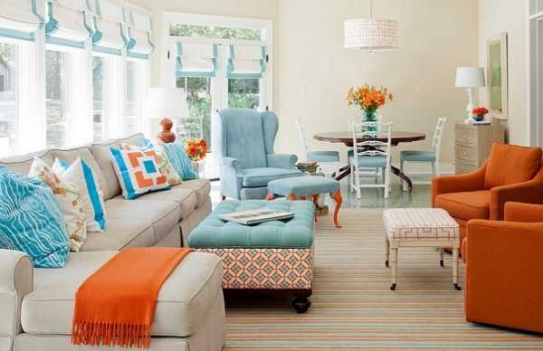 Голубой и оранжевый в интерьере – Сочетание голубого и и оранжевого цветов в интерьере гостиной