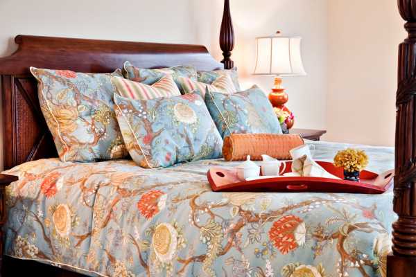 Также можно применить оранжево-голубую гамму и в спальне, но желательно использовать более светлые оттенки, чтобы создать более расслабляющую атмосферу.