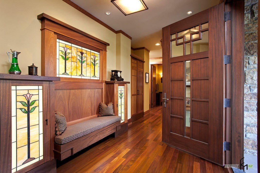 Интерьер с легким сельским налетом обеспечат вам кантри-элементы в прихожей, текстиль на окнах, плетеные корзины для зонтов, деревянные лавочки, декор, выполненный своими руками.