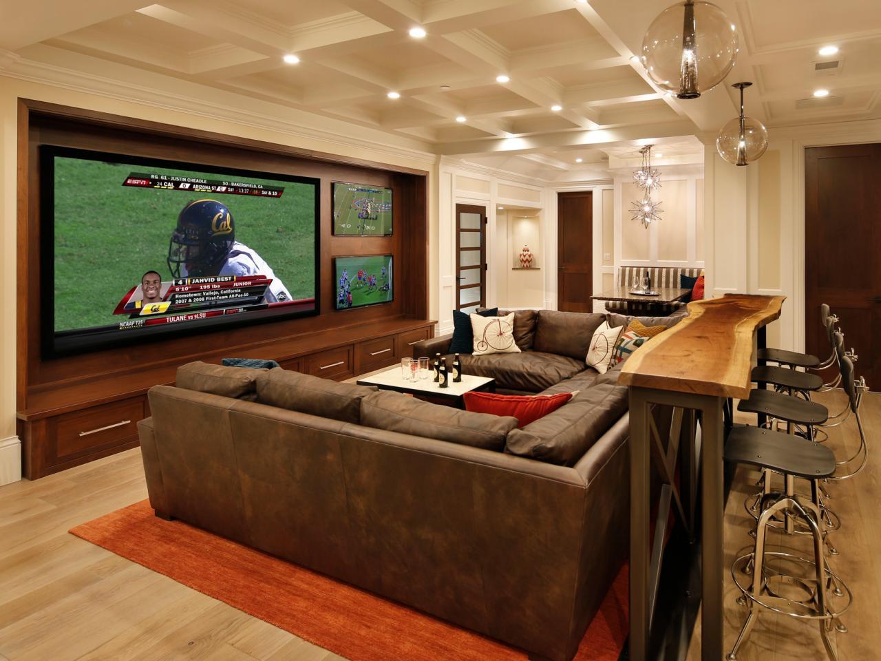 Большинство домовладельцев предпочитают создавать большую многофункциональную медиа-зону, а не разбивать подвал на маленькие комнаты.Этот комбинированный бар, место для отдыха и высокопроизводительный медиа-зал — идеальное место для развлечения друзей и семьи любого возраста.