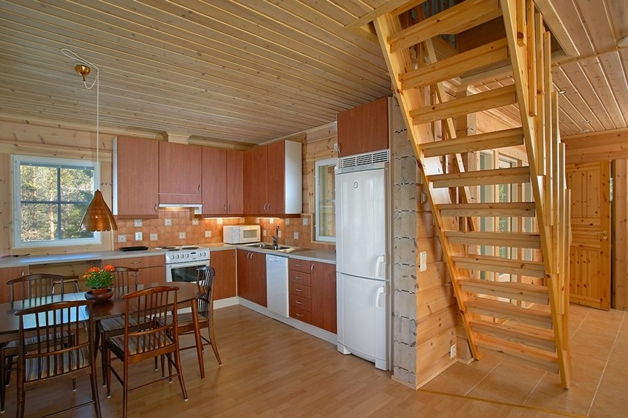 Если ваш дачный дом состоит из двух этажей, то нужно и разделить все помещение на зоны так, чтобы было удобно ими пользоваться. Кухню, столовую и общую комнату лучше расположить на первом этаже, а вот спальня, библиотека или кабинет должны находиться выше. Наполнение второго этажа будет зависеть от габаритов дома, количества жильцов и функций, которые будут выполнять комнаты.