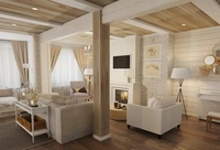 - Интерьер деревянного дома из бруса будет выглядеть эффектный и аккуратней, если использовать клееный брус.