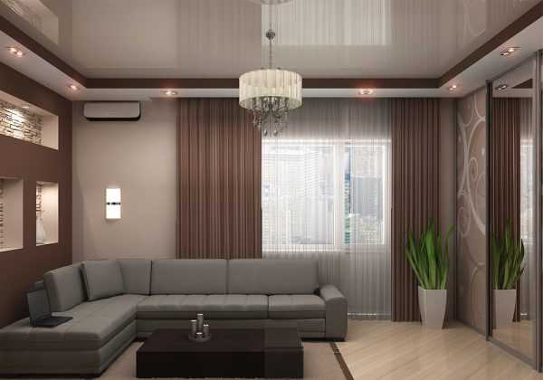 Дизайн гостиной 15 кв.м. с нишами из гипсокартона