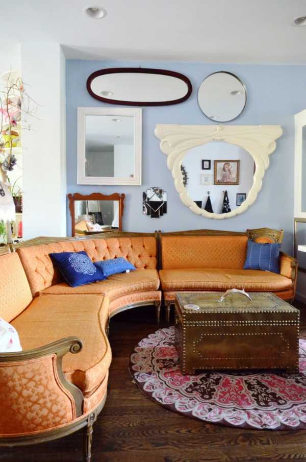 - Присутствие зеркал в дизайне гостиной 15 кв.м так же будет способствовать поставленной задаче. Это могут быть зеркала в чистом виде или зеркальные композиции.
