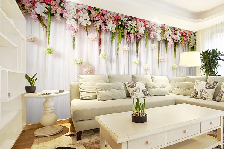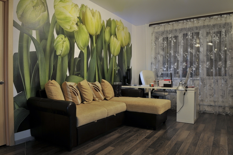 Интерьер гостиной с фотообоями цветы: Фотообои в гостиную цветы под стиль интерьера (4 фото)