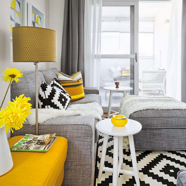 Таким образом, вы скомбинируете серый и желтый в оформлении мебели, но резкого контраста не будет.