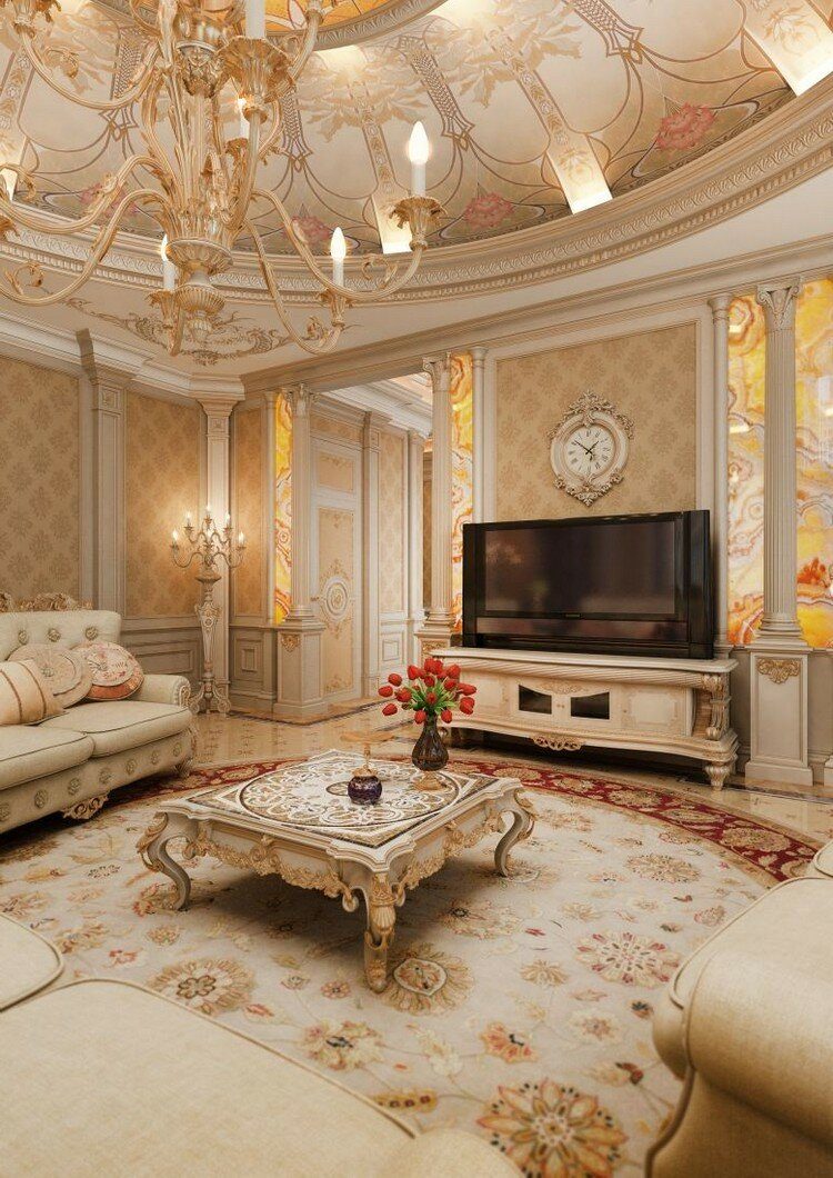 8. Оттенки крем-брюле в гостиной в стиле классика