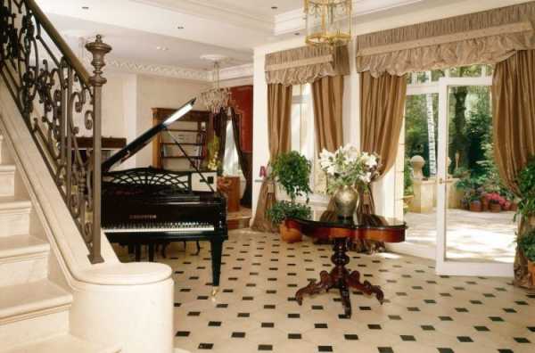Допустимо использование деревянных покрытий и ламината, в этом случае можно дополнительно украсить пол красивым ковром. Наиболее удачным вариантом напольного покрытия является мрамор, этот благородный камень как нельзя лучше завершит классический интерьер.