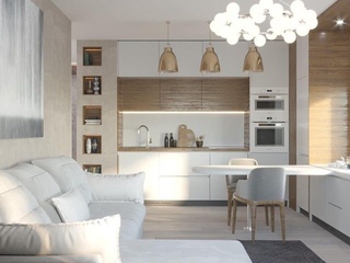 В последние дни наблюдается модная тенденция в соединении кухни и гостиной. Произвести данную планировку можно в любой жилплощади, независимо от числа комнат и суммарной площади помещения. Наиболее часто владельцы квартир решают объединить однокомнатные и двухкомнатные апартаменты.