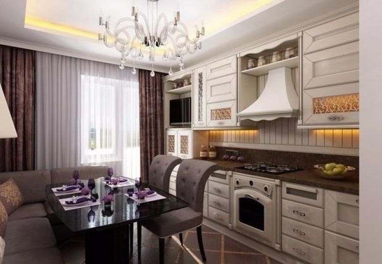м.Мечтательный фиолетовый цвет выглядит нетривиально и романтично. Оккультные учения утверждают, что такие оттенки притягивают силу, могущество и богатство. Верить таким утверждениям или нет – выбор каждого, но можно точно сказать, что эти чувственные тона в сочетании с правильным декором способны создать стильный кухонный интерьер с площадь 13 кв.м.