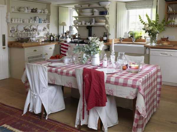 Текстиль из натуральных тканей отлично подойдет к интерьеру дачной кухни. Занавеси, скатерти и салфетки из льна, хлопка и других природных материалов станут хорошим дополнением интерьера в стиле кантри.