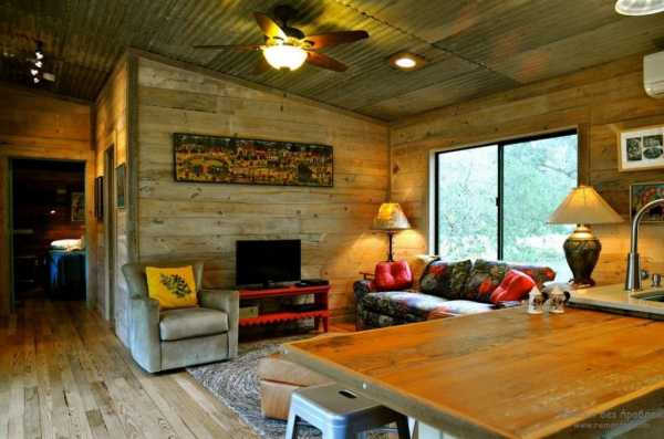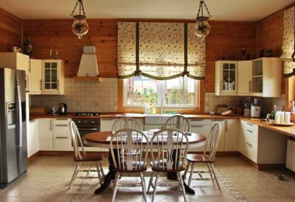 Для загородного дома уместно оформление в стиле кантри с коваными люстрами, шкурой зверя и деревянными декоративными элементами по деревенским мотивам. Дом из бревна с кухней-гостиной в стиле кантри превратится в семейное гнездо или холостяцкое логово параллельного измерения, где можно будет спокойно отдохнуть от суеты и технического прогресса.
