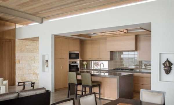 - арки, колонны и балки — используются для зонирования кухни, особый эффект получается именно в частном доме с высокими потолками;