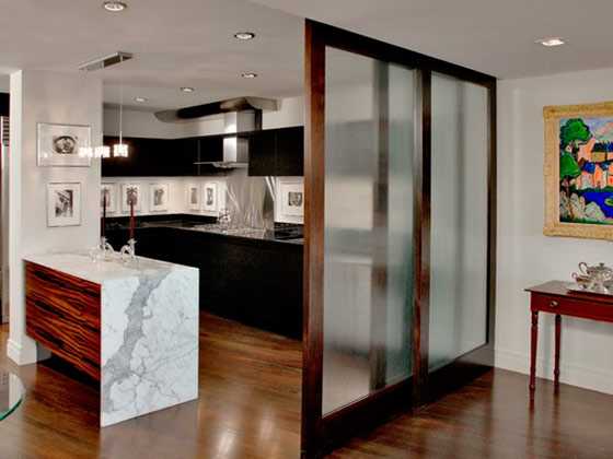 Кардинальный вариант решения проблемы – это установить в комнате раздвижные перегородки или двери гармошки. На самом деле это довольно хлопотно и не слишком удобно, зато вы легко сможете уединиться возле конфорки и заняться приготовлением любимых кулинарных шедевров.