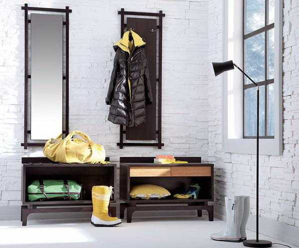 Освобождение любой прихожей от ненужных вещей пойдет на пользу, а особенно небольшой площади 4 кв.м.. Постарайтесь обойтись вовсе без огромного шкафа. Несезонные вещи можно хранить в кладовой или гардеробной, а сезонные размещать на вешалках и вбитых в стены крючках. Встроенные обувные шкафы в пуфики и диваны совместят сразу две функции. Даже в самой крошечной прихожей нужно разместить тумбочку или диванчик для сидения, вы сами оцените удобство в возможности присесть, обуваясь.