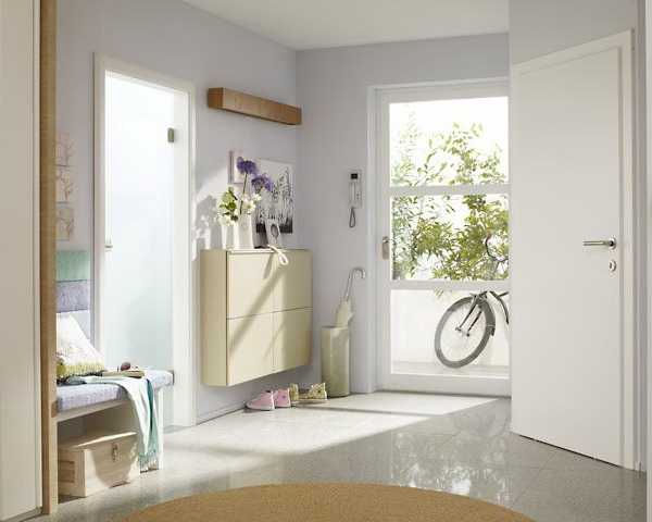 - правильная расстановка: подвесные модули, встроенные обувные шкафчики