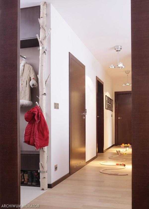 В частных домах и двухэтажных квартирах для экономии места вешалки нередко устраивают под лестницей. Иногда нестандартная форма коридора является результатом перепланировки, или же таковой была изначальная задумка архитектора.