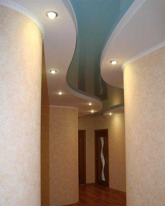 Для большой прихожей дизайнеры советуют выбирать одну красивую люстру и несколько точечных светильников, которые можно разместить по периметру подвесного потолка