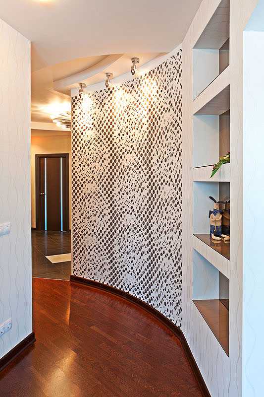 В случае, если весьма узкая прихожая в квартире, но при этом высокая и длинная, то лучше обустроить нишу и как декор картины, панно, потому как мало того, что это украшение пространства, так еще и возможность подчеркнуть вкус собственников жилья.