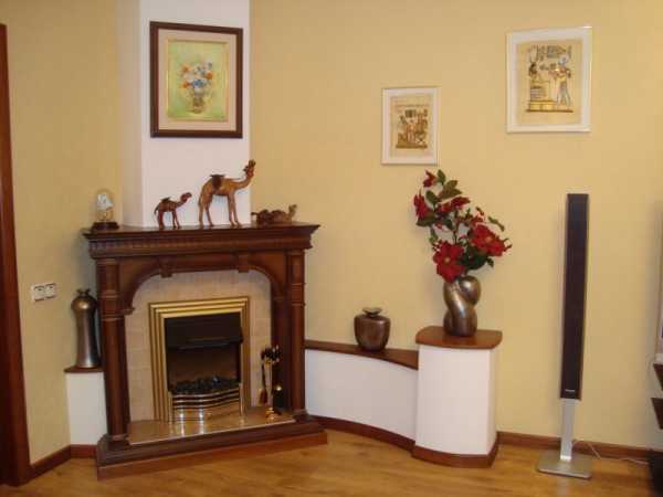 Камин и его портал привлекает к себе внимание посетителей квартиры и делает ее по-особенному уютной.