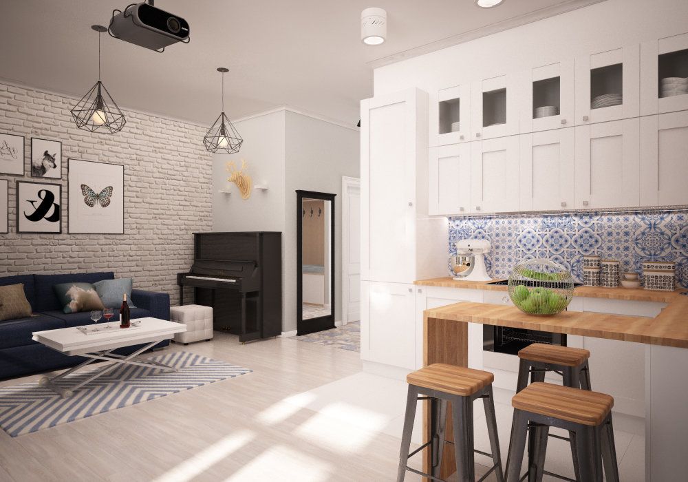 Идея ремонта квартиры 42 кв. М: кухня-гостиная и отдельная спальня