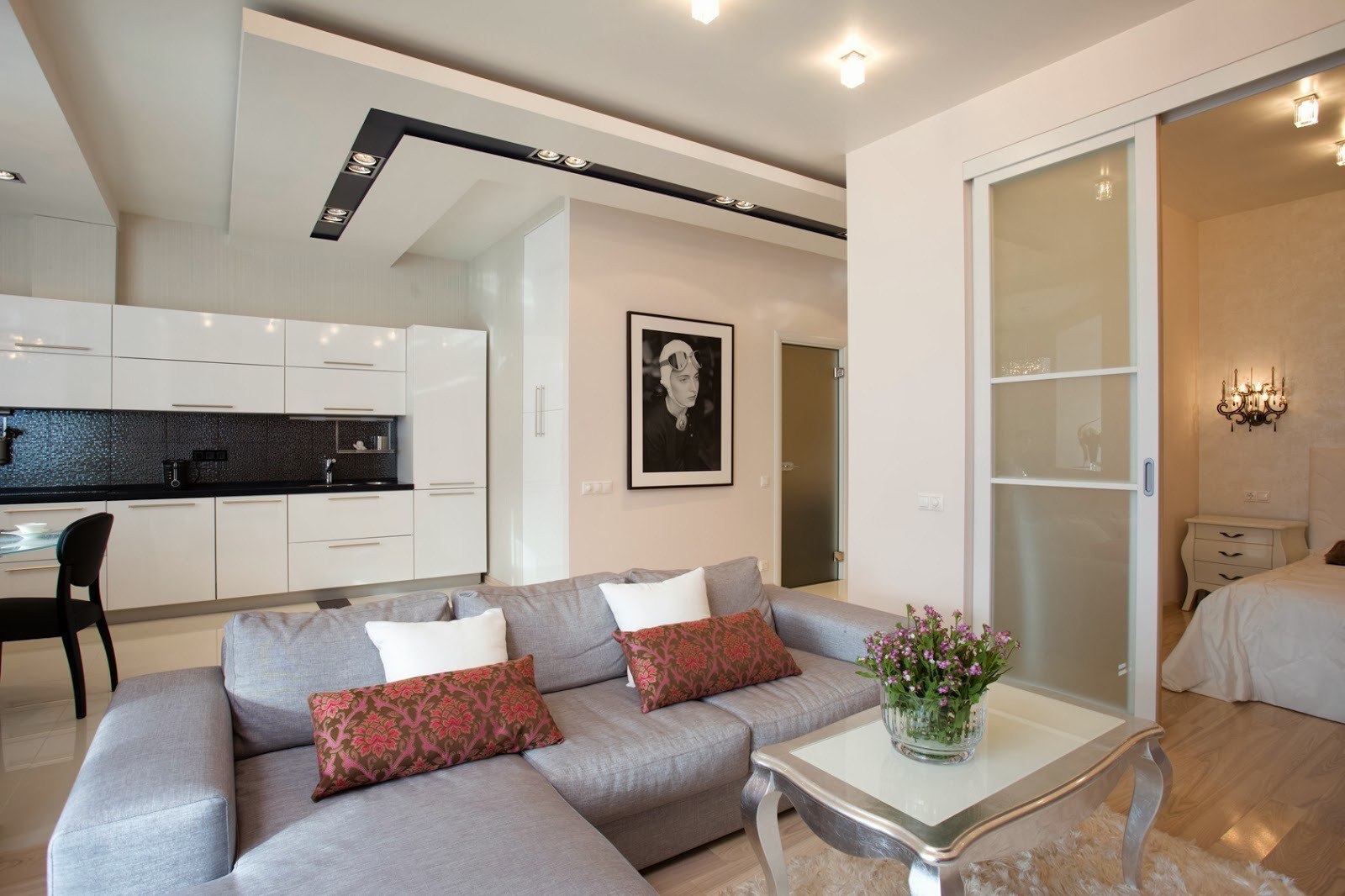 Дизайн квартиры-студии 40 кв. м (58 фото): интерьер кухни-гостиной, планировка
