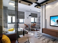 Цветовая гамма интерьера современной квартиры-студии имеет преимущественно пастельные мягкие тона. Благородный бежевый, светлый персиковый и коричневый сделают вашу квартиру необычайно уютной и комфортной. Дополните пространство модными статуэтками, небольшими картинами и мягким ковриком, чтобы сделать его еще более уютным.Самое главное правило – наличие современных элементов декора и современной техники. Для данного стиля характерно наличие встроенной техники, которая имеет дистанционное управление.