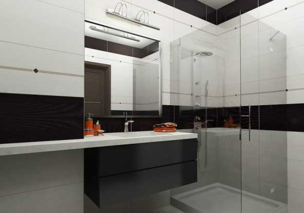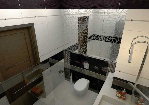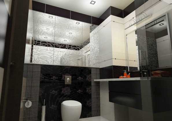 Зеркальный потолок, блестящие поверхности отделочного материала и предметов интерьера зрительно прибавили желанных объемов.