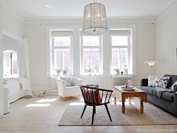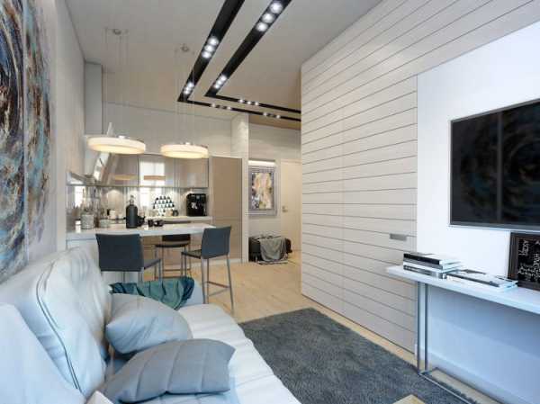 Маленькие квартиры оформляются в светлых тонах, чтобы зрительно шире выглядело пространство. Продумайте освещение – источников света должно быть в достаточном количестве.
