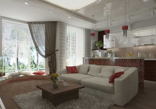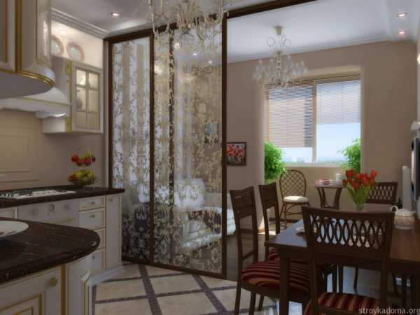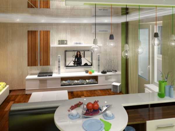 - Совмещение спальной и лоджии, кухни и лоджии.