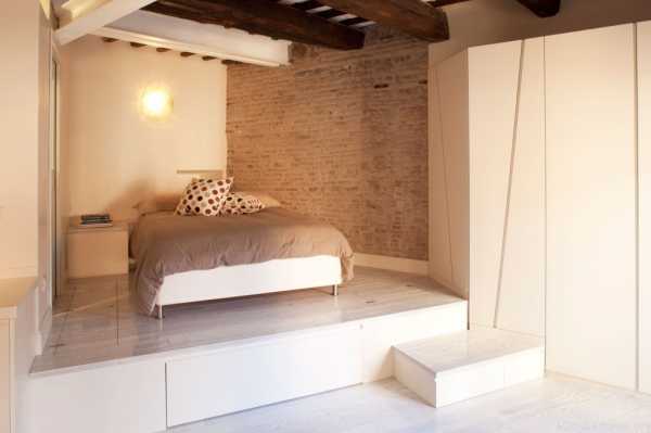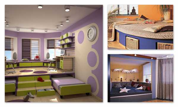 Из-под него может «выезжать» кровать. А вот на поверхности подиума в таком случае может быть организовано рабочее место, гардероб, уголок для малыша и прочее.
