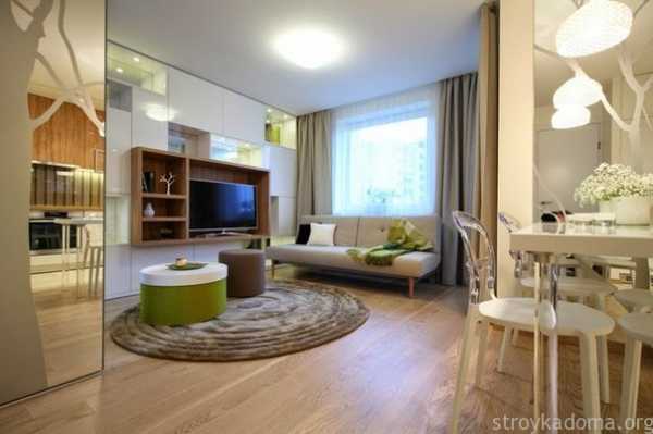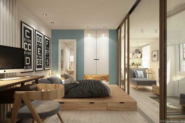 Пространство должно быть правильно зонировано, то есть каждый свободный метр площади должен быть обдуман и задействован. Зависит все от того, какие пожелания у хозяина квартиры.