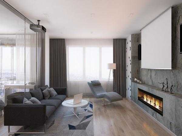 Лучше всего смотрится однокомнатная квартира, выполненная в виде студии в стиле лофт, минимализм.