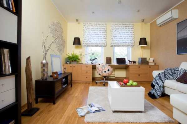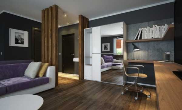 Это актуально в том случае, когда в наличии студия, и есть надобность в выделении уголка для кабинета.