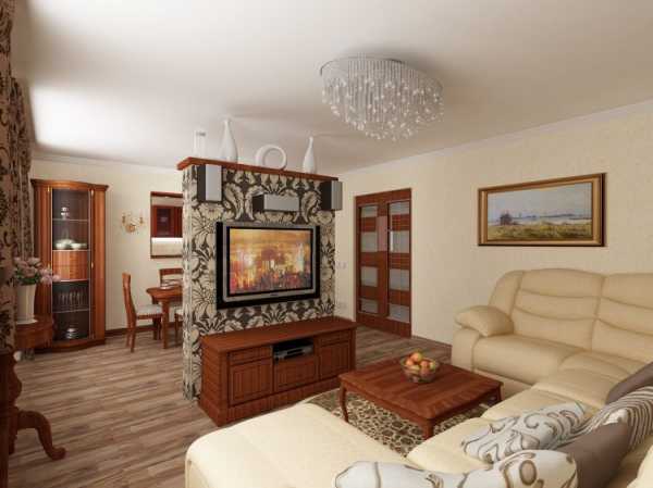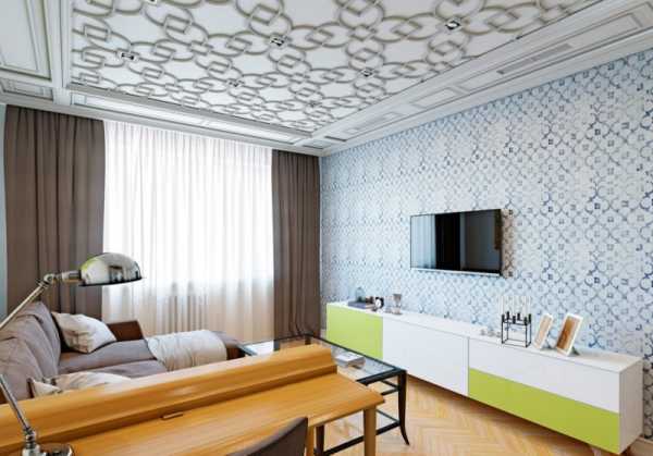 Если для спальной зоны отлично подходят голубые, светло-розовые, бежевые оттенки, которые привносят уют и располагают к отдыху. То подготавливая дизайн для гостиной обычно выбирают: золотистые, светло-зеленые или коричневые цвета.