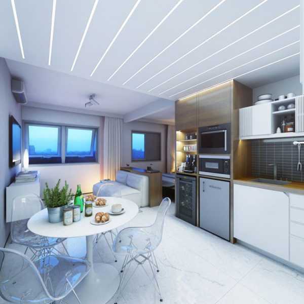 Проект, в котором полноценно встроенный гарнитур, выполнен в светлой цветовой гамме — это практичное и разумное решение для дизайна интерьера столовой зоны однокомнатной квартиры. Предметы кухонного гарнитура должны быть функциональными и стильными. Для того, чтобы сделать помещение обеденной зоны однокомнатной студии максимально полезным, существует много решений, которые обеспечат её быструю трансформацию в рабочее место.