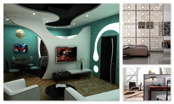 - Разделение комнаты шкафами, стойками, панелями, дверьми.