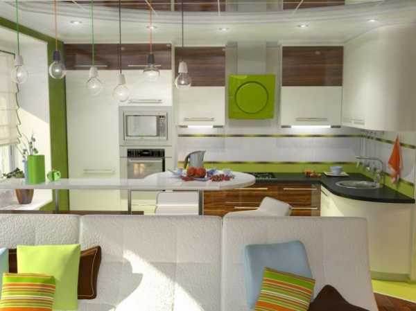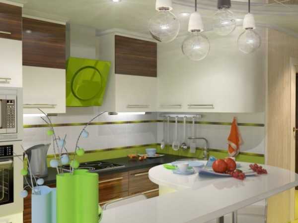 Цветовая гамма выдержана в белых и зеленых тонах. Белоснежный цвет прибавляет объемов, а зеленой привносит в дизайн свежести и радужности.