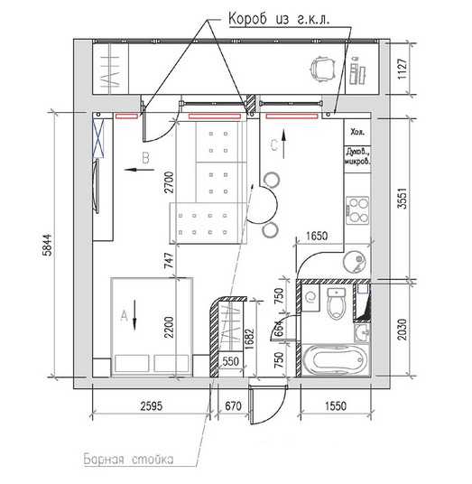 В любом проекте есть свое решение по планировке для малогабаритного жилья. Кто предпринимает попытки по расширению, а кто-то выполняет условное деление, а есть и те, кто увеличивает количество помещений за счет воздвижения препятствий между зонами.