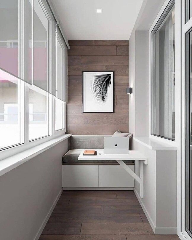 Обычно столик с компьютером ставят в глубине лоджии, но для полноценной работы нужно будет подвести туда свет. Столик может быть «откидным» или «встроенным»