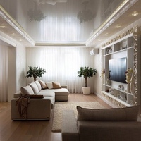 Глянцевые натяжные потолки в зале, конечно, всегда смотрятся выигрышно.