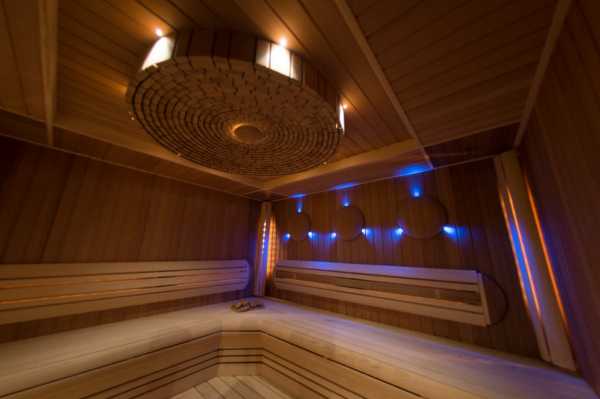 Ни в коем случае не стоит применять хвойные породы дерева ввиду наличия в их составе смолы, которая под воздействием высоких температур в парной выделяет клейковину. Также не стоит осуществлять ремонт парилки древесными плитами, линолеумом, ДВП, ДСП. Эти материалы способны выделять токсические компоненты в воздух, подвержены гниению и разбуханию под воздействием влаги, пожароопасны. Интерьер парилки стоит дополнить крепкой мебелью: полками, лежаками, лавками округлой формы. Потолочную поверхность оформляют точечным светом.