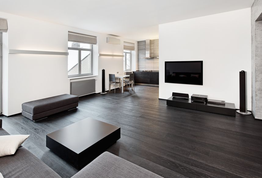 Но есть у такого выбора и недостатки. Мыть светлое напольное покрытие придется чаще, чем черное. Также человеческий глаз пока еще не привык к чисто-белому полу, ведь мода на него началась не так давно. Из-за этого некоторым в помещении будет неуютно, ведь оно кажется слишком стерильным.