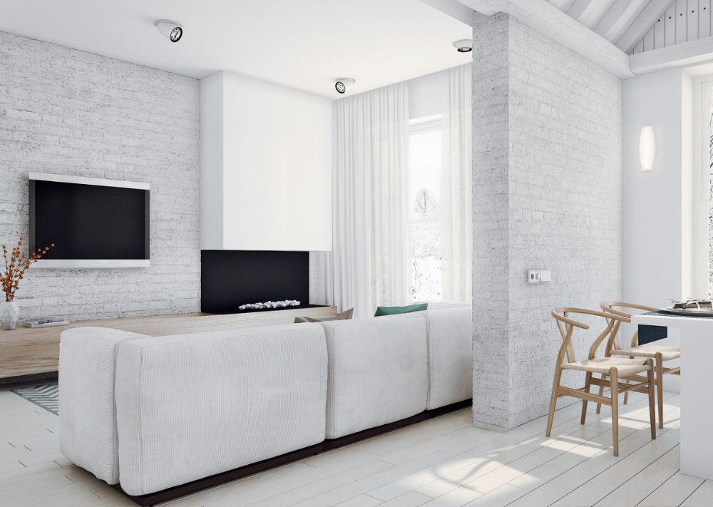 Белые стены помогают сделать комнату максимально просторной и свежей.