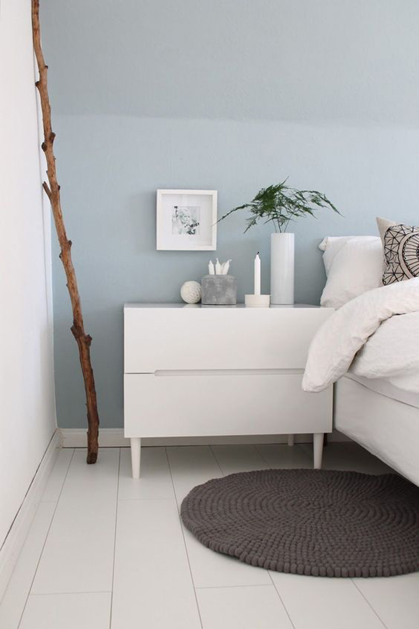 Чисто-белый в обстановке любой комнаты смотрится скучно и напоминает о больничных палатах. Чтобы не создать такой эффект, обязательно стоит продумать несколько ярких акцентов.