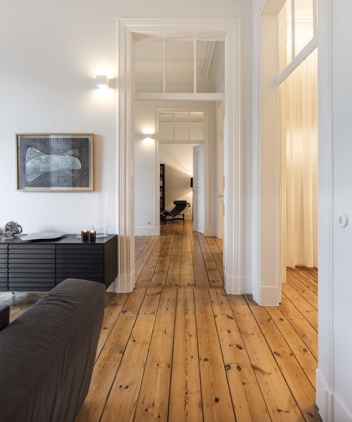 Пол из выбеленной древесины Пол Macia Если вы хотите более изысканный вид, обратите внимание на светлое натуральное дерево с белой морилкой или герметиком, как этот классический пол «елочкой». Этот стиль хорошо сочетается со скандинавским и современным стилями дизайна. Эта отделка хороша, если вы хотите видеть текстуру дерева или рисунок деревянного пола.